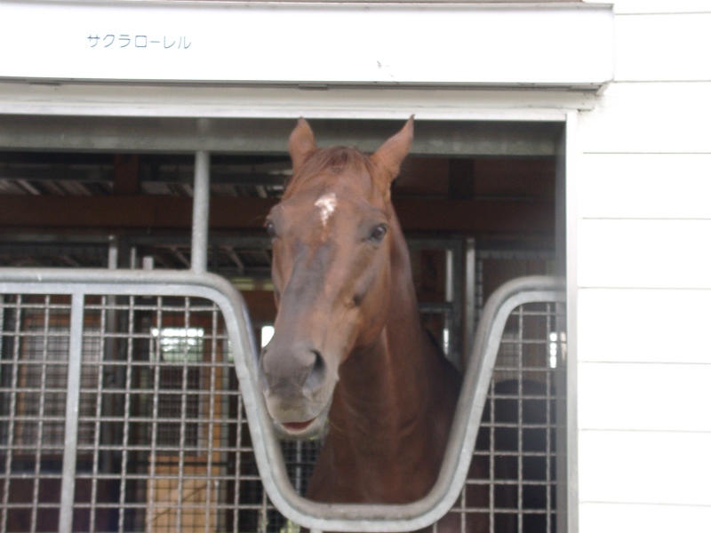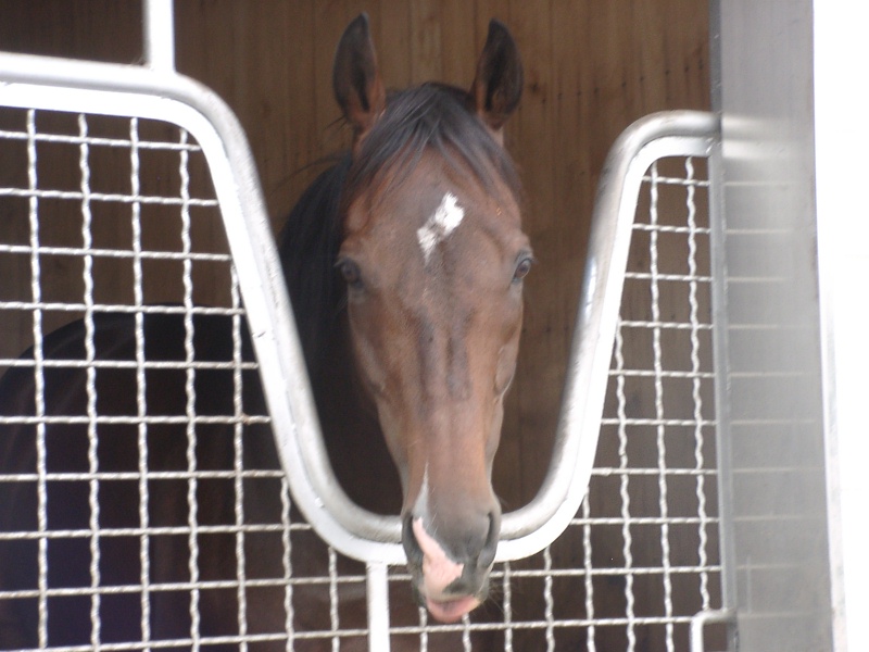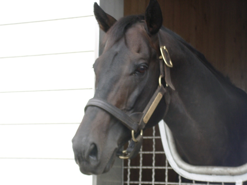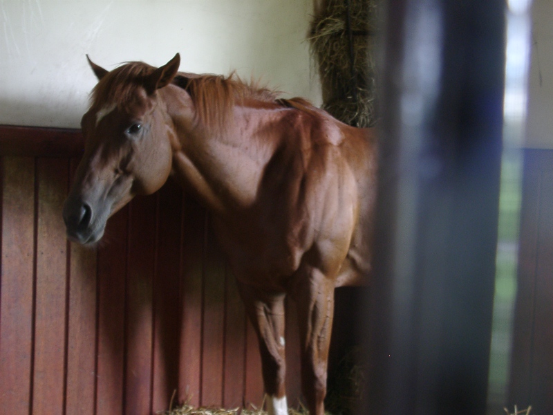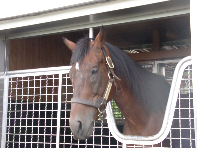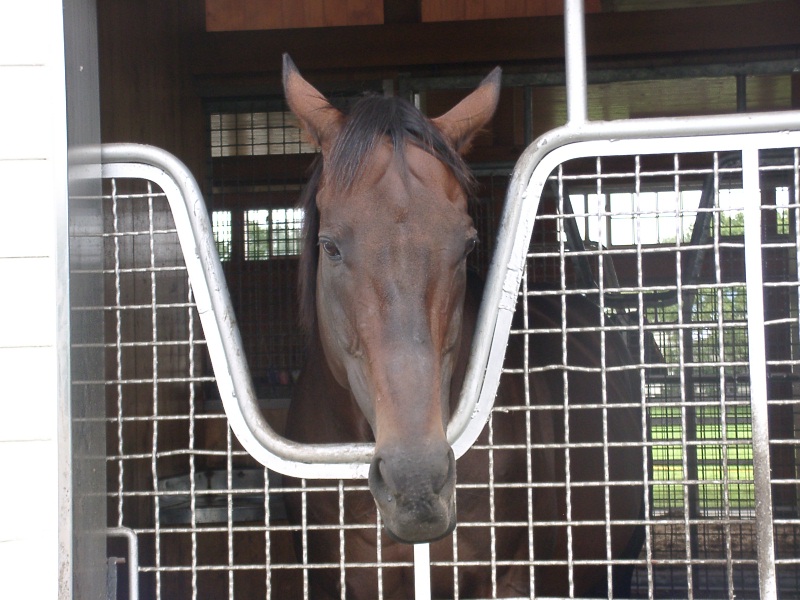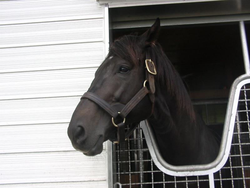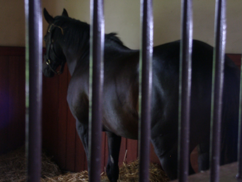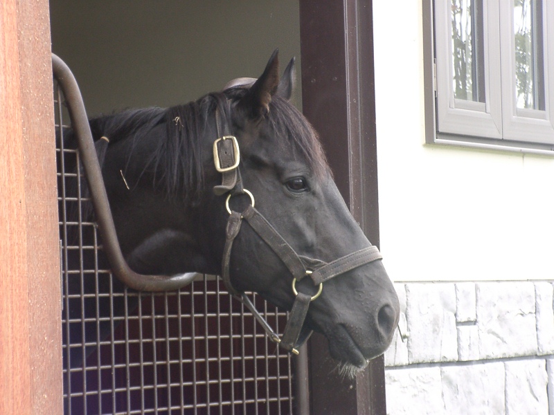 アグネスデジタル。誘導馬になれるといわれたほど、穏やかで有名な馬でしたが、ホントだった。   馬房の中で銅像のようにぽけーっと立っていて、ちょっと口が開き気味なのもご愛敬。