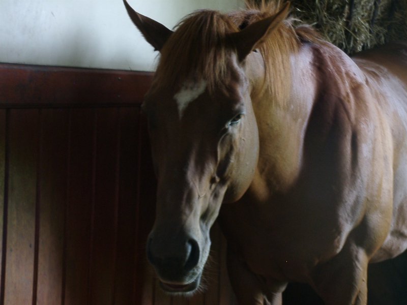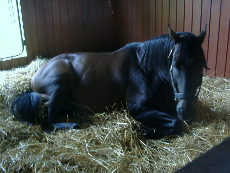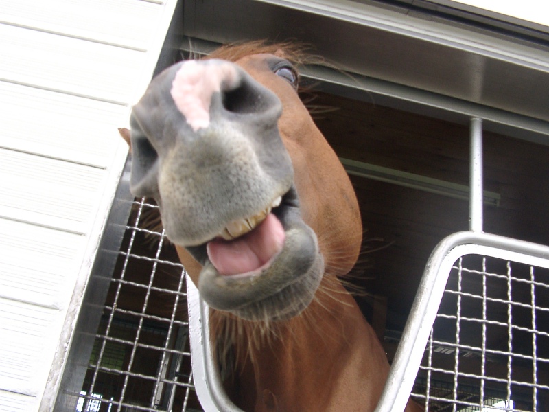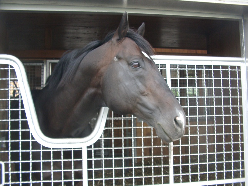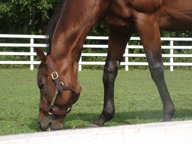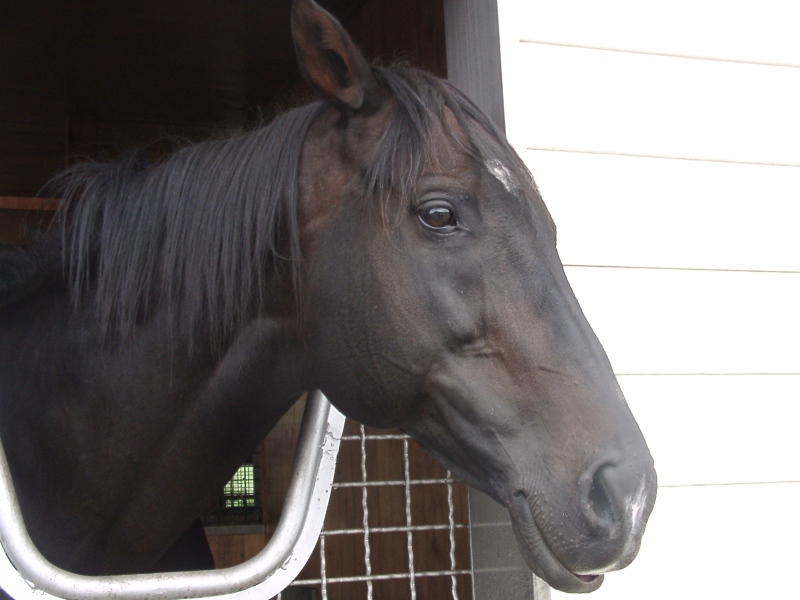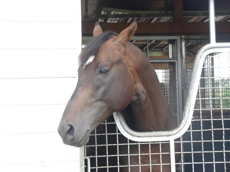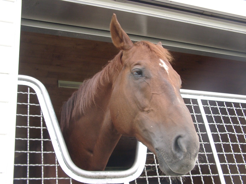 アグネスデジタル。誘導馬になれるといわれたほど、穏やかで有名な馬でしたが、ホントだった。   馬房の中で銅像のようにぽけーっと立っていて、ちょっと口が開き気味なのもご愛敬。