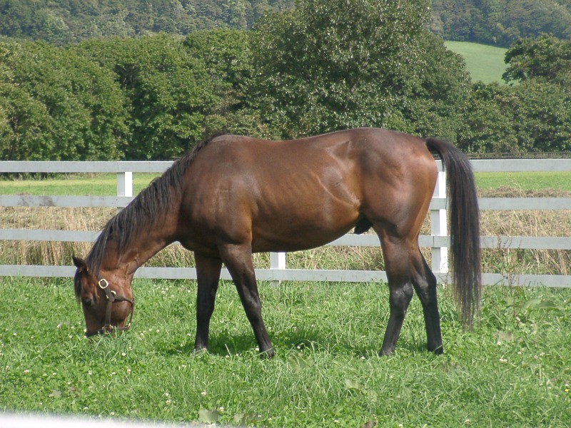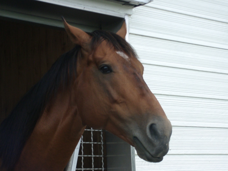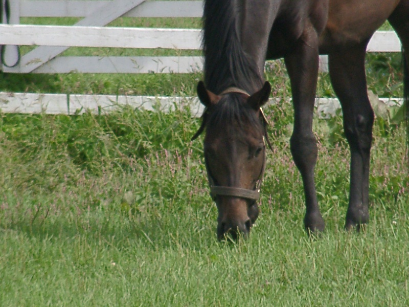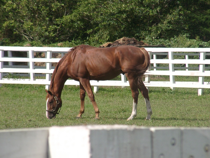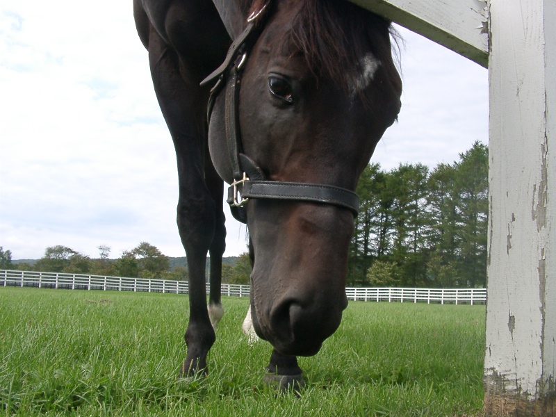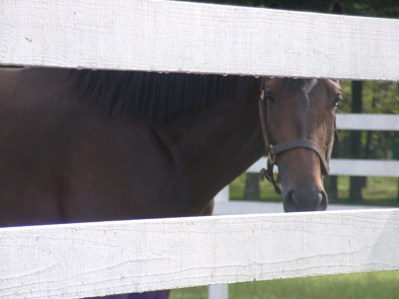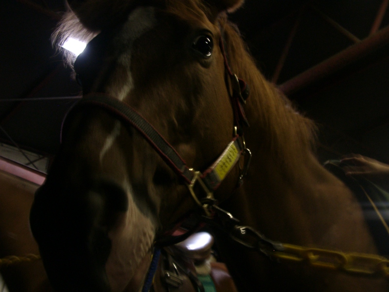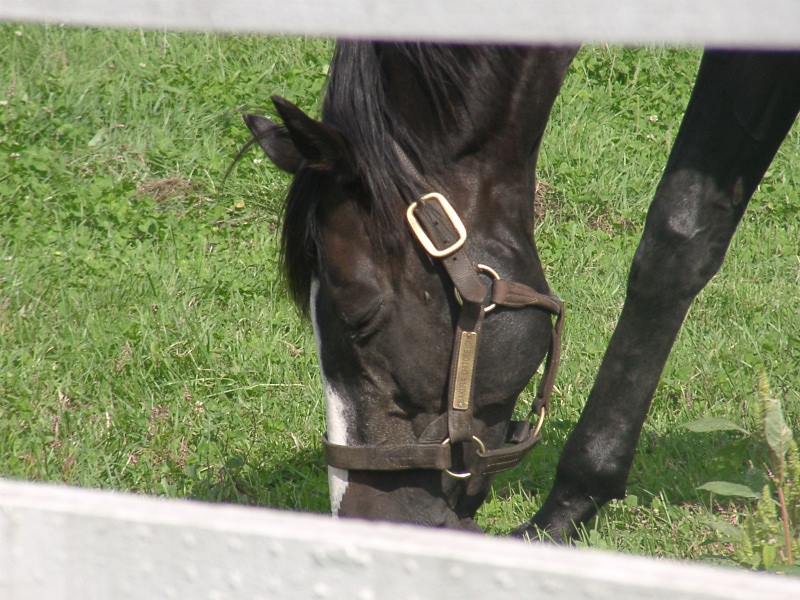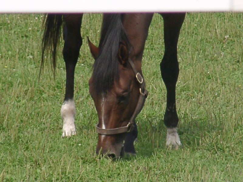 アグネスデジタル。誘導馬になれるといわれたほど、穏やかで有名な馬でしたが、ホントだった。   馬房の中で銅像のようにぽけーっと立っていて、ちょっと口が開き気味なのもご愛敬。